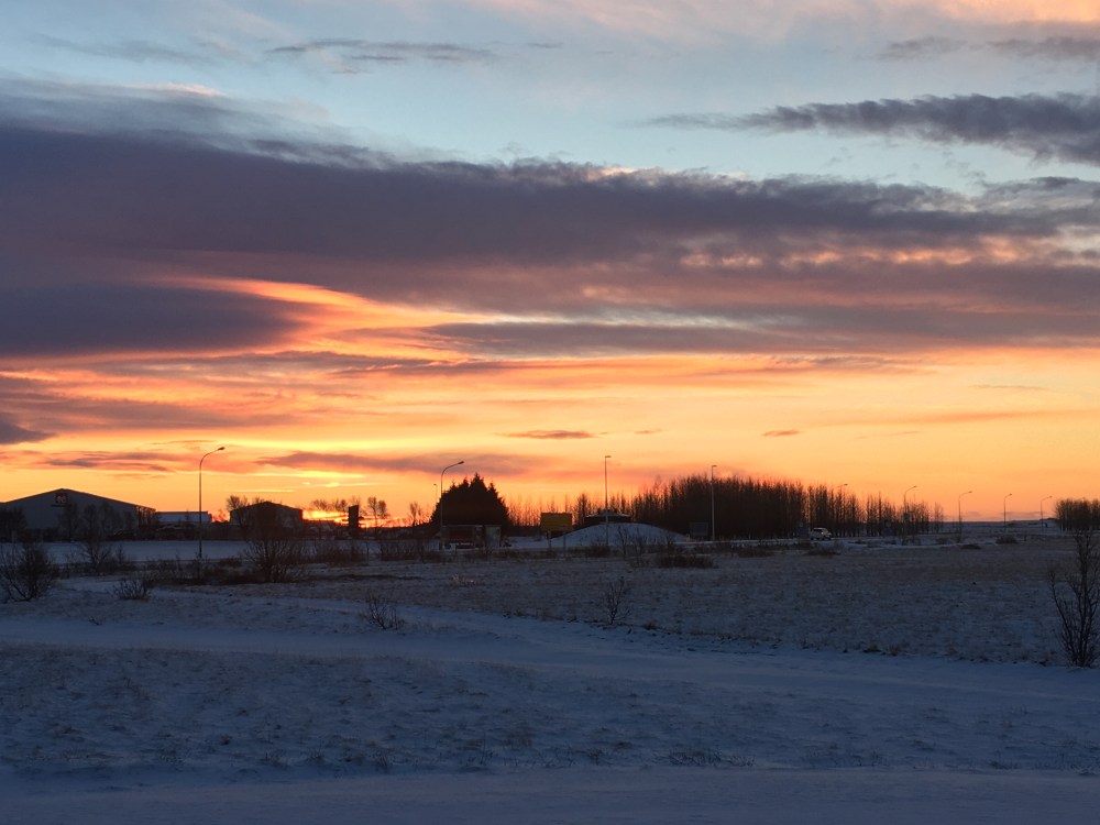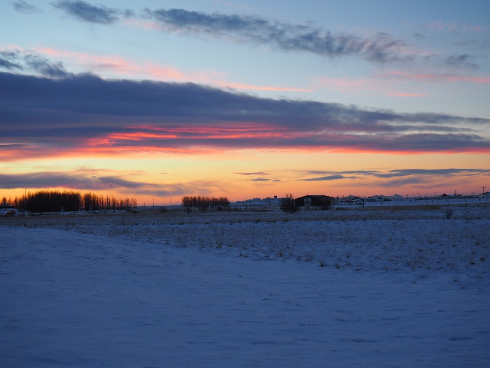 The truth is Iceland in January is not warm and it’s certainly not sunny. In fact, you really only have 4 hours of daylight. Honestly, it’s not even a real daylight, more like a 4-hour sunset. It sounds horrible at first, but not only do you get used to it fast, it also makes for some neat pictures. Examples below.